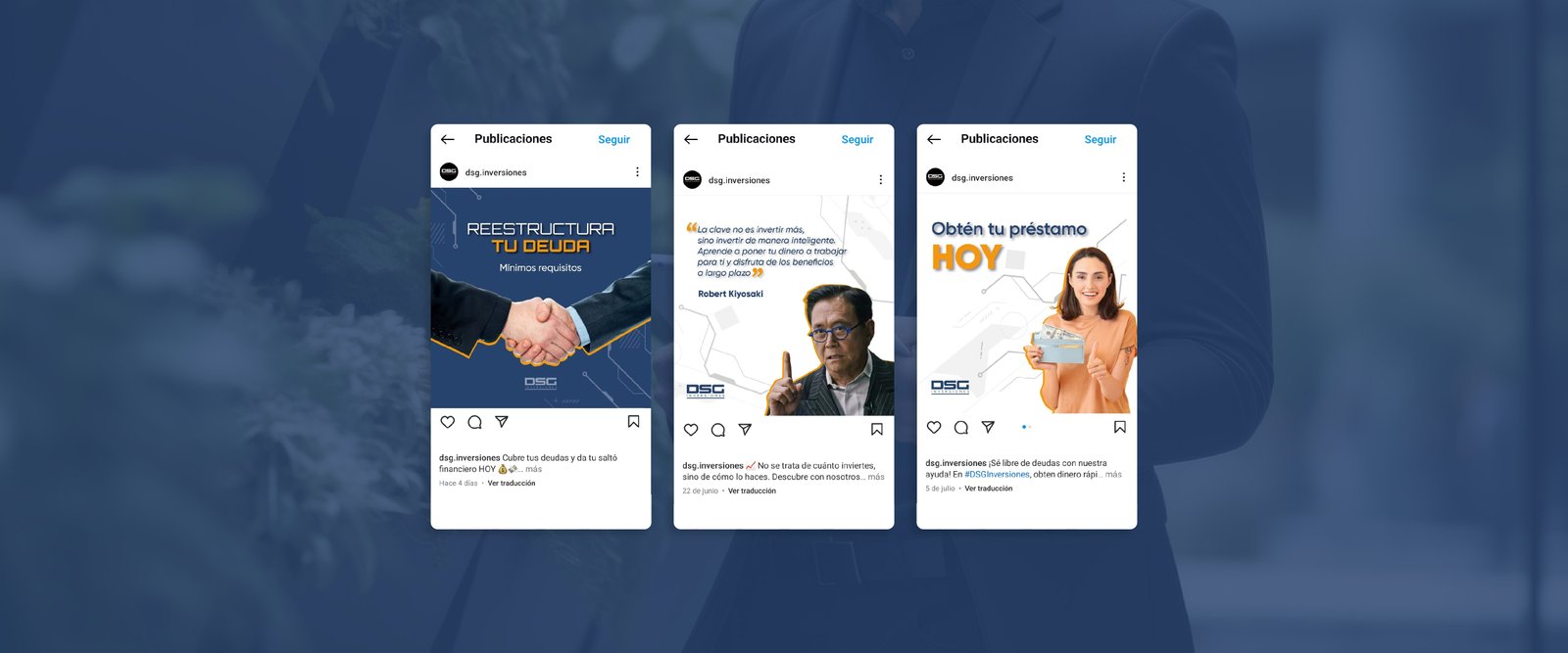 Gestión de Redes Sociales, Desarrollo de Páginas Web, Publicidad Digital, Branding y Diseño Gráfico, Email MarketingDSG Inversiones es una empresa dedicada a la gestión y asesoría en inversiones, ofreciendo soluciones financieras personalizadas. Desarrollamos la página web y gestionamos las redes sociales de DSG Inversiones, asegurando una presencia digital sólida y profesional.